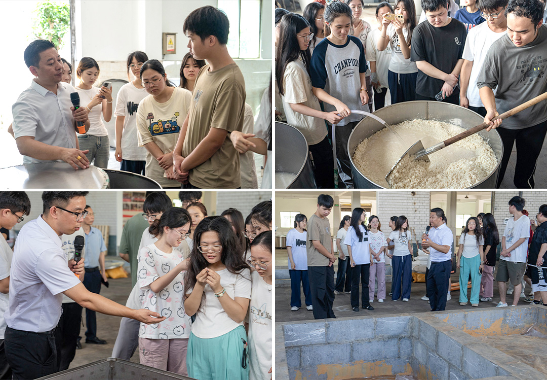 “課本上酒曲知識抽象枯燥,但在雅大,我們親眼見證了它的神奇魔力,”一位學生興奮地分享道,“從一粒糧食或一個水果,到最終醇香的酒液,酒曲就像無形的魔術(shù)師,驅(qū)動了整個發(fā)酵蛻變的過程。”在酒曲研發(fā)中心與生產(chǎn)車間,雅大技術(shù)專家現(xiàn)場解 析了“雅大牌”酒曲的原料奧秘與工藝精髓,學生們凝神觀察,書本中的微生物發(fā)酵原理躍然眼前。
