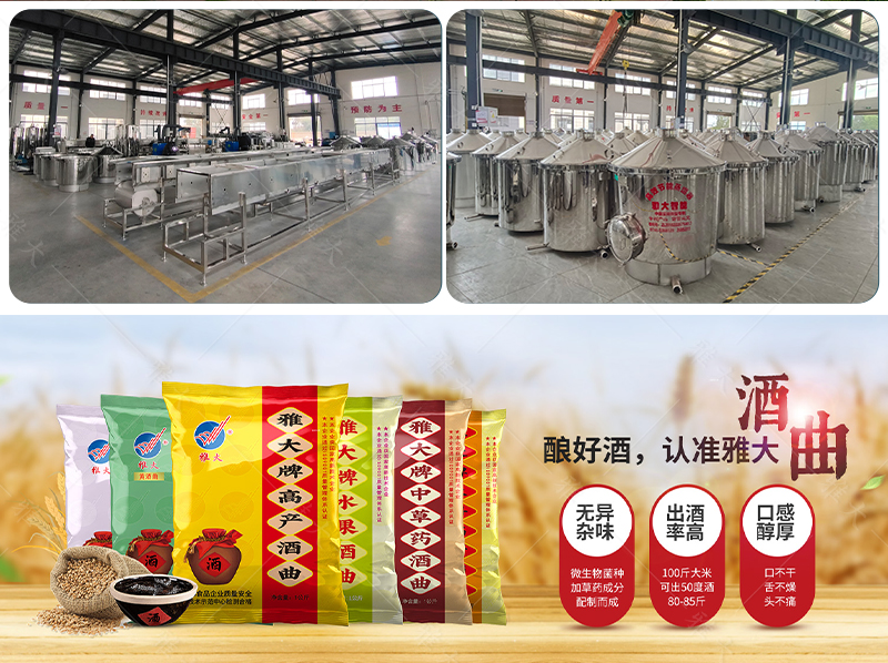 雅大擁有26年釀酒行業(yè)經(jīng)驗(yàn),不僅生產(chǎn)設(shè)備與酒曲,還自營酒廠。設(shè)備均經(jīng)老師傅反復(fù)調(diào)試與實(shí)戰(zhàn)改進(jìn),如側(cè)開口設(shè)計(jì)、錐形底、節(jié)能反燒鍋爐、全自動(dòng)蒸糧機(jī)等,都很大的